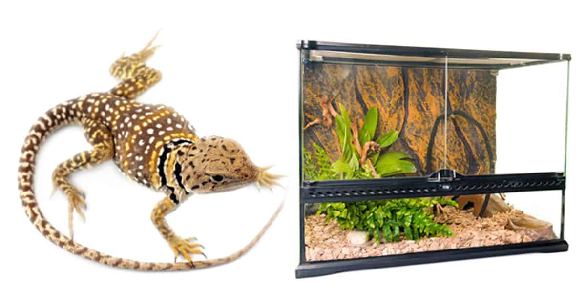 When building an enclosure for a Collared Lizard, bigger is better: a minimum of 3ft in length with large vents and glass sliding front doors. If the ambient temperature where you live drops low in winter, then you need to provide a thermally-efficient enclosed tank.